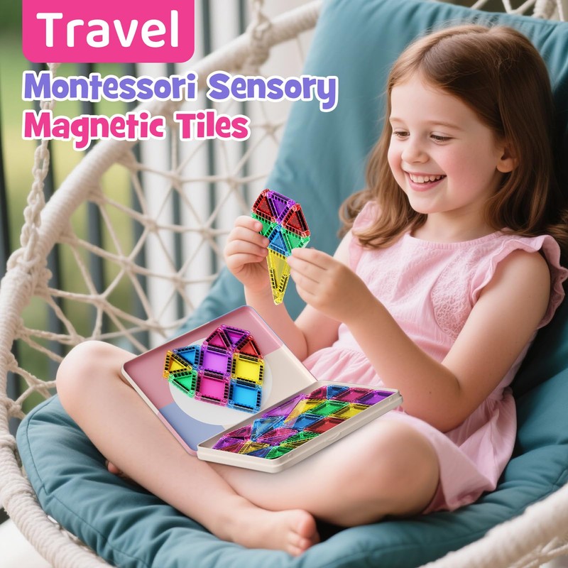 - 【Mini Protable Magnetic Tiles】Envision expansive Magnetic Building Blocks magically downsized. Our compact tile set is designed for those on the move. Discover endless creativity with our travel magnet toy series, offering flexibility wherever you go while nurturing intelligence and inventiveness. Witness your child craft compelling designs, cultivating sharp critical thinking, and unleashing their boundless imagination.