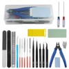 - Cost Efficient & Full Range Tools Kit: Package included 1 x Side Pliers, 5 x Tweezers, 5 x Files, 1 x Yellow Model Separator, 1 x Polishing Block, 1 x Steel Ruler, 1 x Engraving Pen and 5 x Spare Blades, 1 x Polishing Cloth, 2 x Double-sided Polished Bar, 2 x Screwdrivers, 1 x Clear Box.