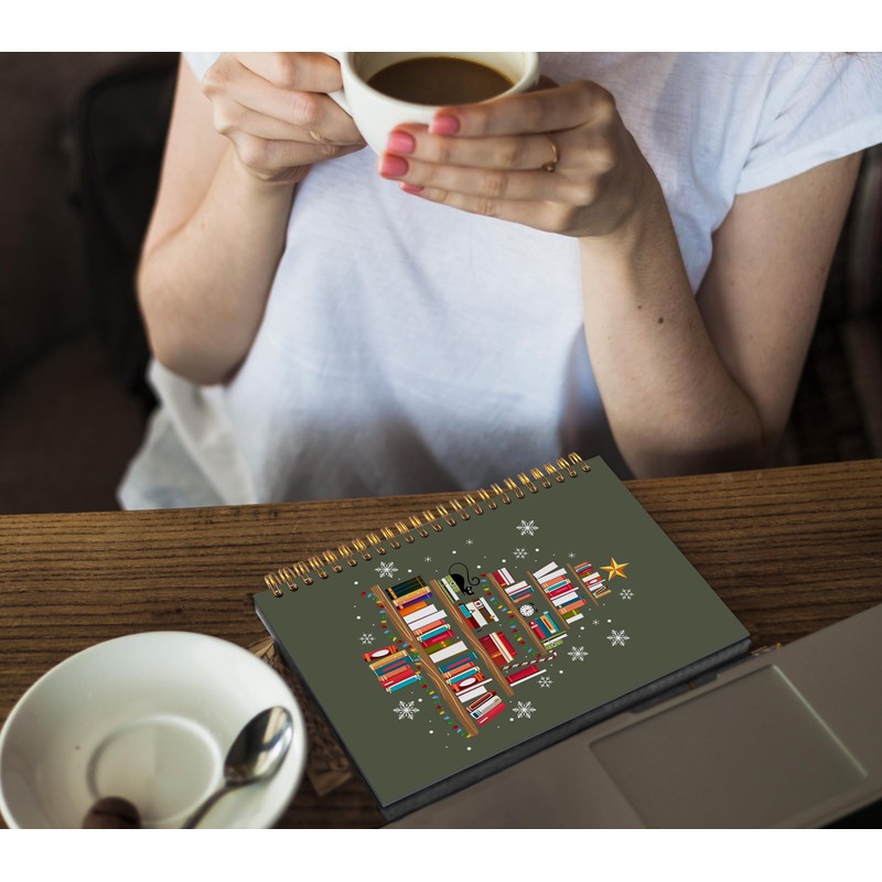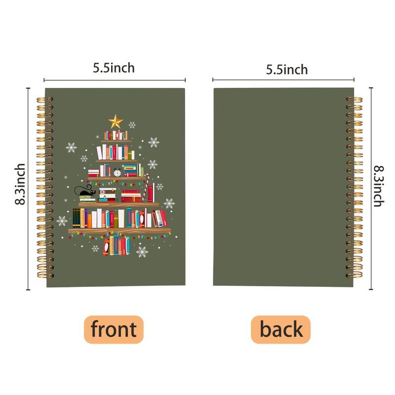 WNAGT Christmas Book Tree Spiral Notebook 5.5x8.3, Book Lover Reader Gifts Journal, Librarian Reading Gifts Notebooks for Note Taking, Christmas Black Cat Bookish Journals for Writing