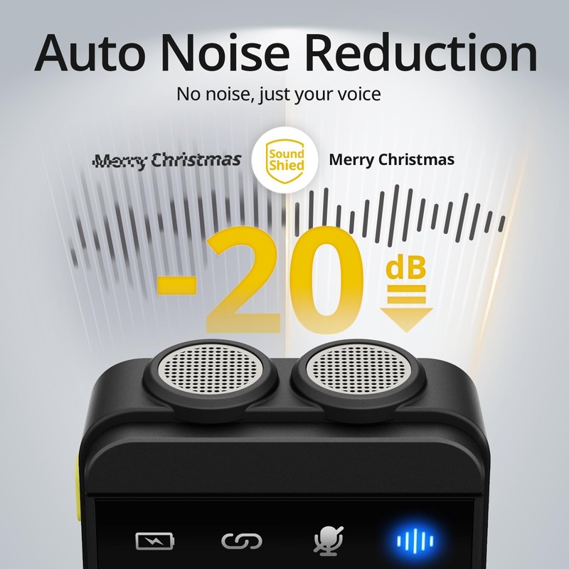 - One-Click DenoiseCut background noise precisely while keeping your voice crystal clearachieve a powerful -20dB noise reduction with just one click on your microphone for iPhone, Android (USB-C Port).