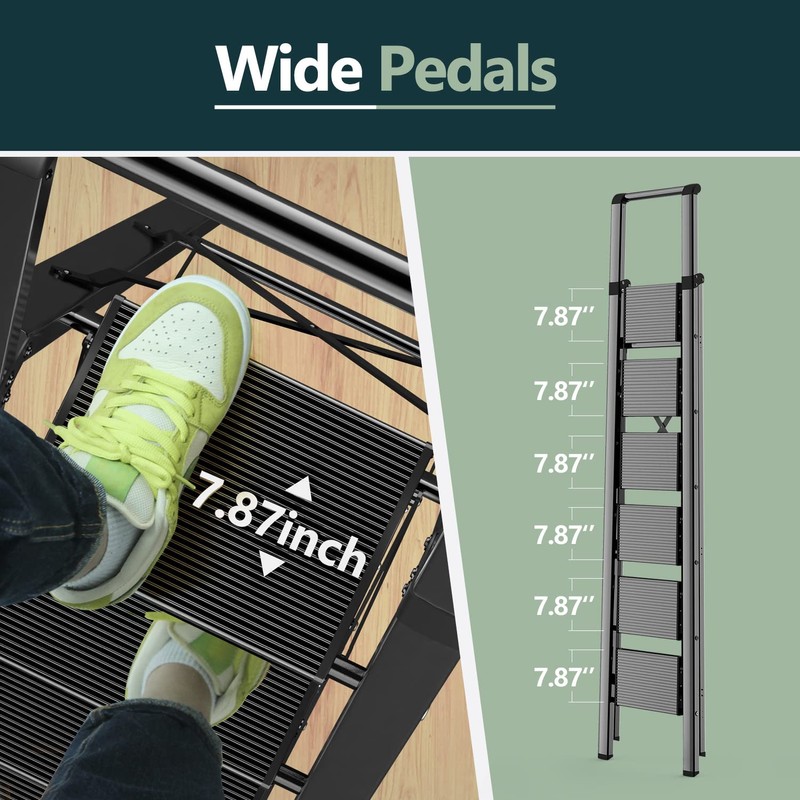 - Anti-slip pedals and feet - Widen 7.87'' pedal with non-slip lines. Every step is reliable. The foot pads are of thick rubber material with a wave texture and multi-directional anti-skid. Ensure stability and protect the floor.