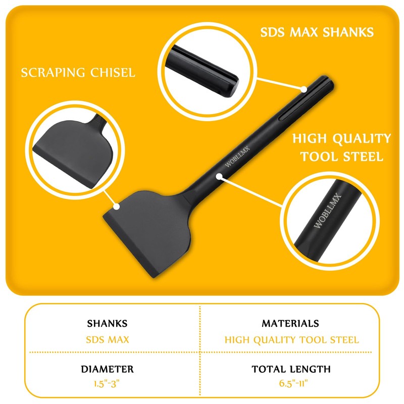 WOBLLMX 1.5" x 9.8" SDS Max Scraping Chisel for Wide Tile & Thinset Scraper W...