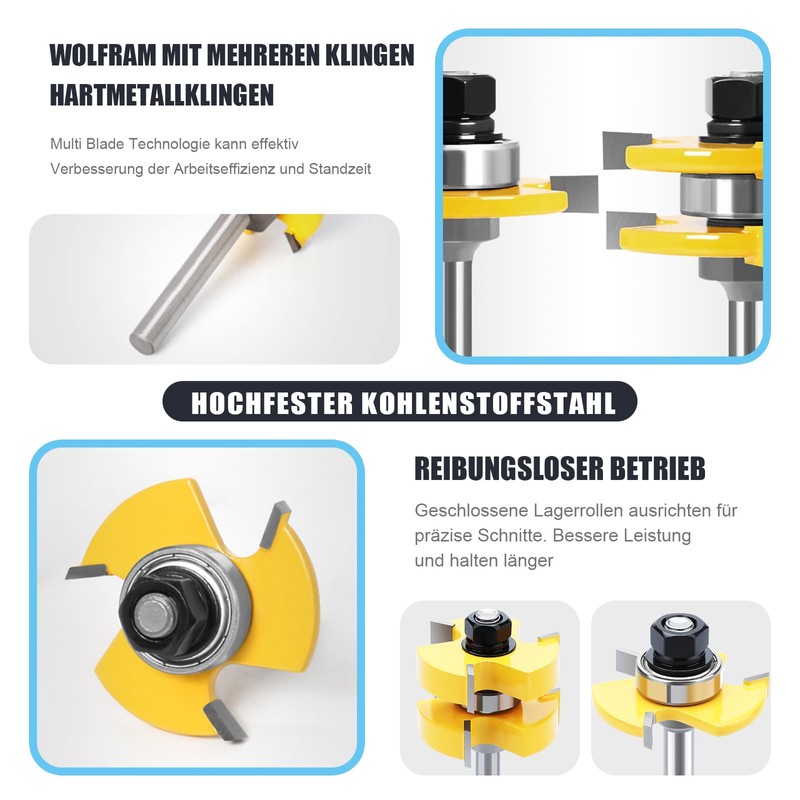 WOBLLMX 2 Pieces Groove and Tongue and Groove Set, 8 mm Shank, 3 Teeth, Adjustable T Shape Woodworking Milling Cutter Set, Router Bit Woodworking Milling Wood Cutter Tool
