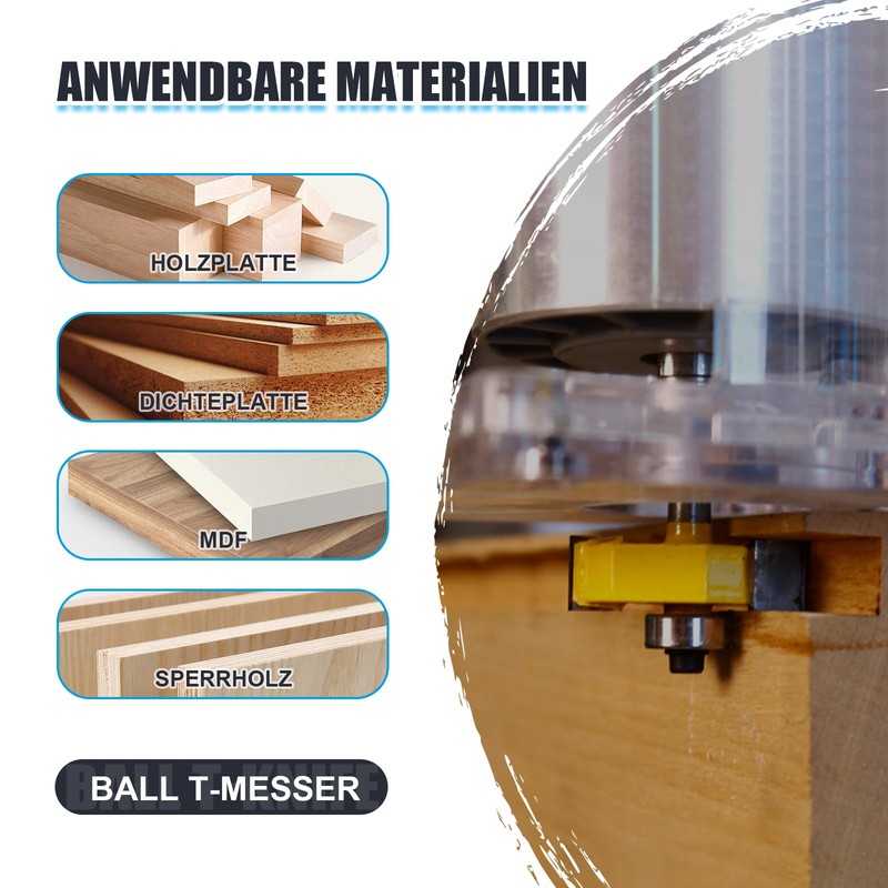 - Suitable for cutting various composite materials, solid wood, hardwood, cork, medium density fibreboard, particle board, plywood solid wood.