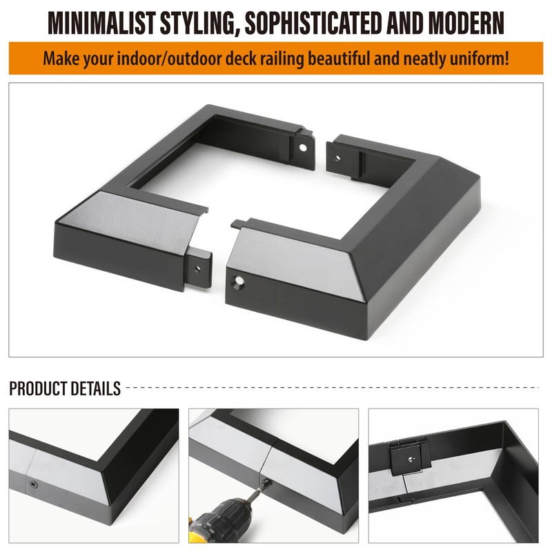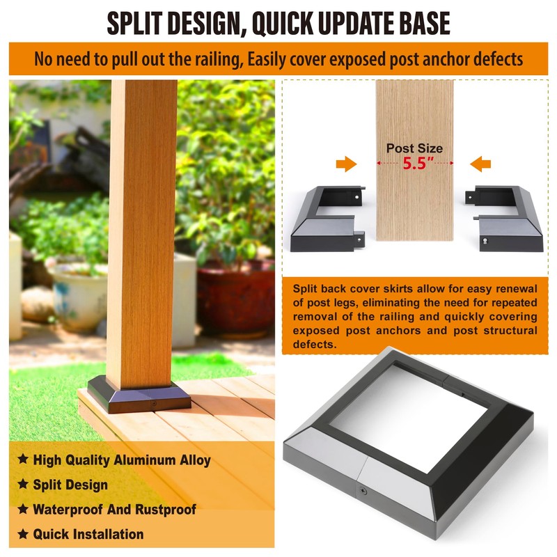 - High-Quality Material: The Deck Post Base Cover is made of aluminum alloy with one-piece casting molding and high-temperature powder baking paint on the surface (50% matte surface), Which is Waterproof, Rust-resistant