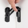 - 【Space-Efficient Design】— The 90° barn door latch is an innovative solution for various door and wall configurations. It fits seamlessly into flat or right-angle spaces, providing a secure lock for sliding doors with the convenience of a simple toggle mechanism.