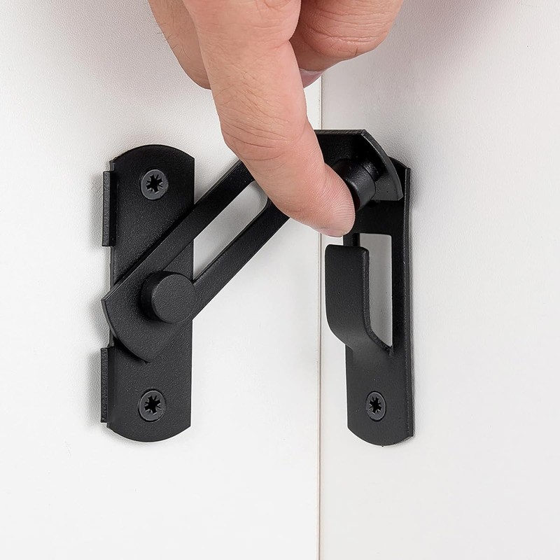 - 【Universal Compatibility】— This 90° right-angle barn door latch is a versatile addition to any home or office. Perfect for doors, cabinets, bathrooms, toilets, windows, furniture, and pet enclosures, it's a cost-effective solution that negates the expense of installing a new door lock, making it an ideal choice for a variety of applications.