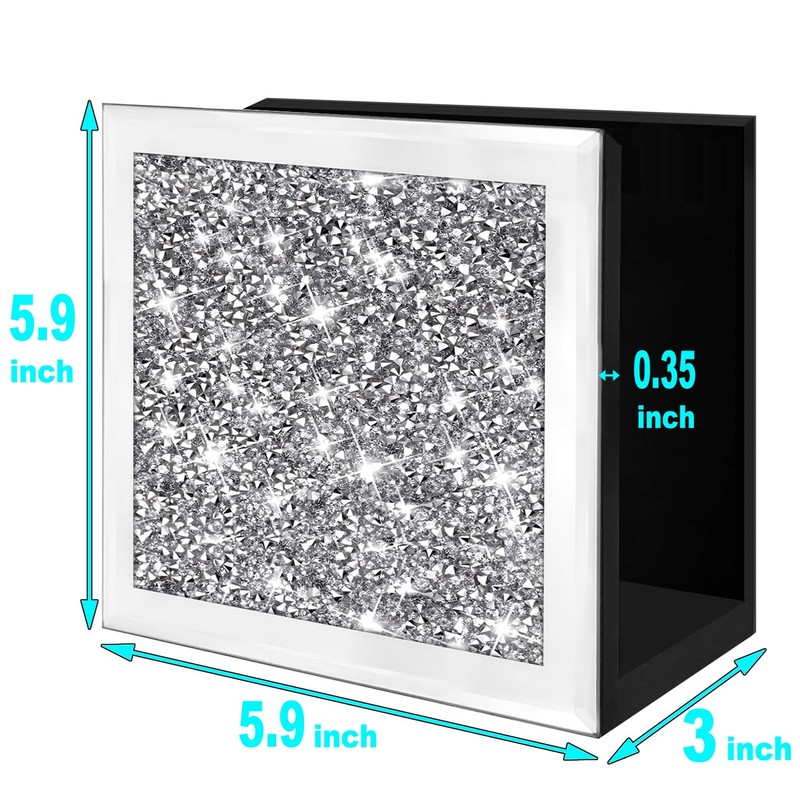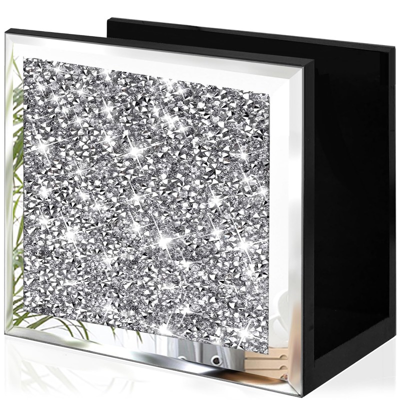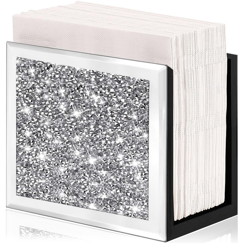 Wocred - Servilletero de espejo, soporte vertical de diamante triturado de vidrio, soporte cuadrado de vidrio para servilletas para mesa de comedor o mostrador en la cocina. (5.9 x 5.9 x 3 pulgadas)
