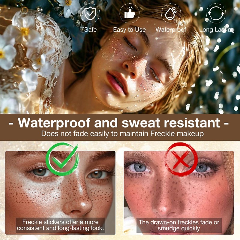 - 【Waterproof & Sweatproof】 Wodelanle sparkle freckles are made to withstand your active lifestyle. With advanced waterproof technology, these patches stay vibrant and intact through sweating, swimming, dancing, and more. Rain or shine, your glow will never fade.