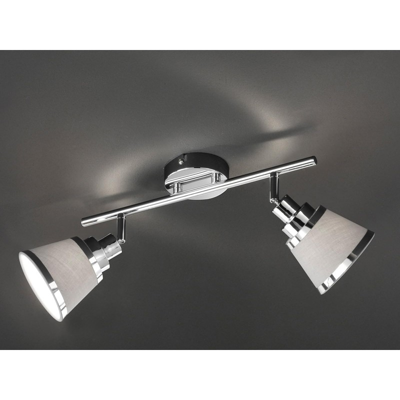 WOFI Design Ceiling Spotlight Zoom Shiny Chrome with Grey Fabric Lampshades - 2 Spotlights Swivelling E14 Socket - Ceiling Lighting for Indoor Use