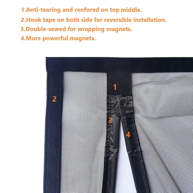 - WITHSTAND FREQUENT USE- Double line sewed on the cloth that packed magnet; A square cloth added on top opening maintain the door screen not tearing on top opening; Thicker thread used in the whole stitching; 6 needles per inch, more close and apparently sturdier than most other products which is three and a half needles.