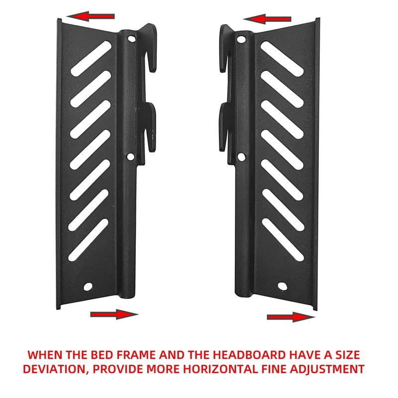- Adjustable: The bed hook adapter kit is designed with multiple slots, which can be adjusted to the vertical height or width.When the bed frame and the headboard have a size deviation, provide more horizontal fine adjustment