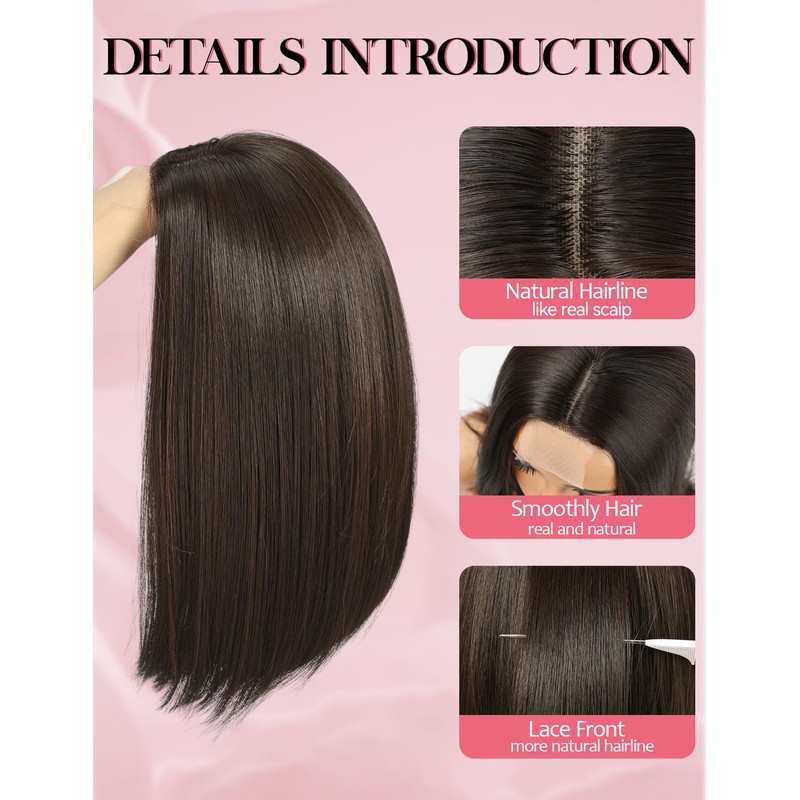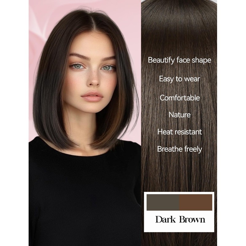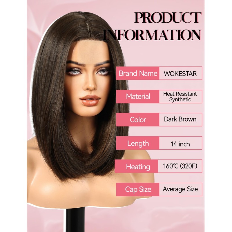 WOKESTAR Bob Wigs for Women Middle Part Bob Style Heat Resistant Fibre Synthetic Heat Resistant Wigs Dark Brown Color