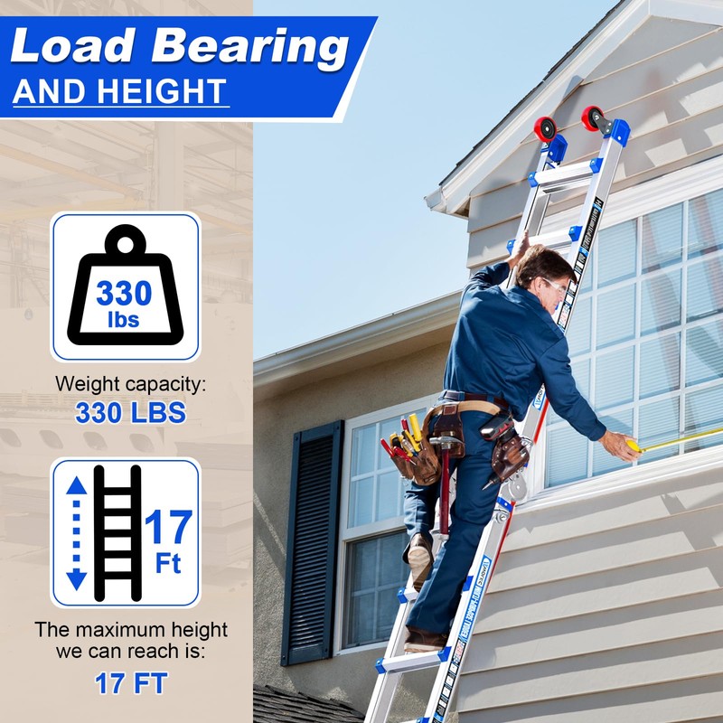 - Versatile 5-In-1 Design: Industrial-grade aluminum A-frame + telescoping system converts to 5 configurations (A-frame, right angle, stair A-frame, extension, folding ladder). Tackle any indoor/outdoor high-reach task with one versatile tool