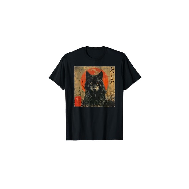 • Striking Japanese-style wolf design with red sun and brushstroke calligraphy for lovers of wolves and Eastern aesthetics.