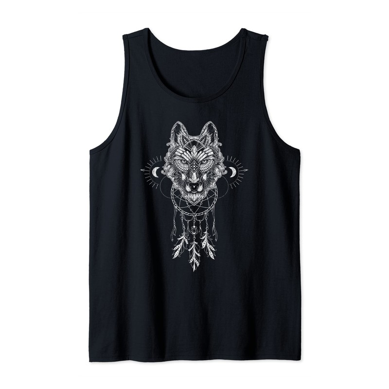 Wolf, dream catcher, magic figures, boho bohemian Tank Top