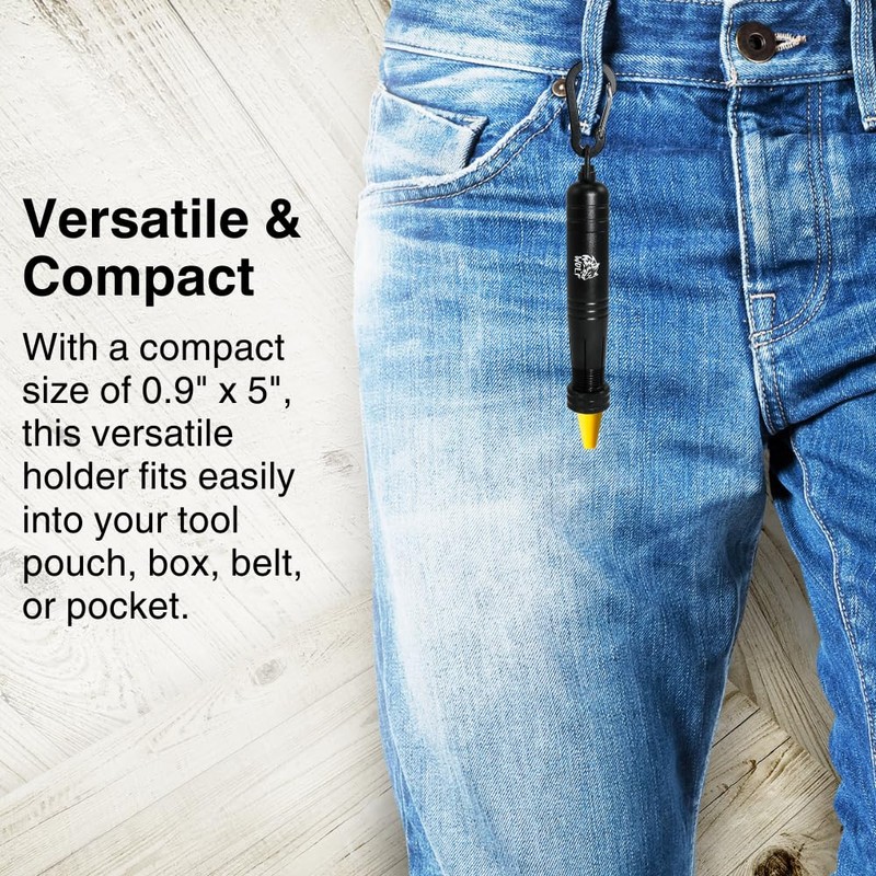 - LIGHTWEIGHT – Lightweight design will not add heavy weight while on-the-job and provides for all-day comfortable usage. Hassle free design reduces wasted time and speeds up the application of lumber keel crayons or ferro rods, to hold them in place. Featuring a large, adjustable knob, our holder locks your crayon into place, even when applying lots of pressure.