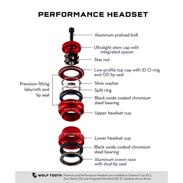 • These Zero Stack (ZS) headsets are for frames with internal bearing cups that are pressed into the frame.