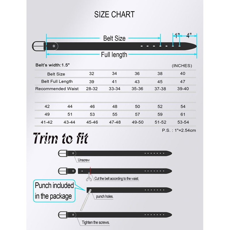 - [Perfect Fit]: There are 7 holes on the mens leather belt to make belt fits more waistline size. Order 1 size larger than your pant size for the best fit.