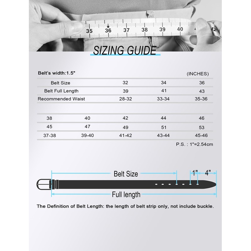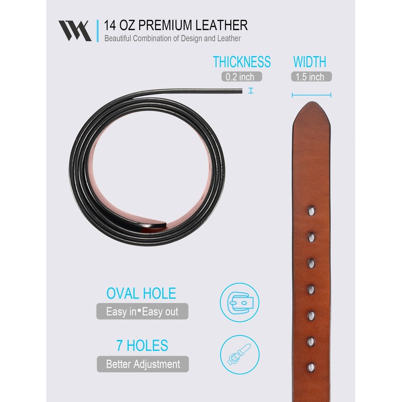 • [Perfect Fit]: There are 7 holes on the mens leather belt to make belt fits more waistline size. Order 1 size larger than your pant size for the best fit.