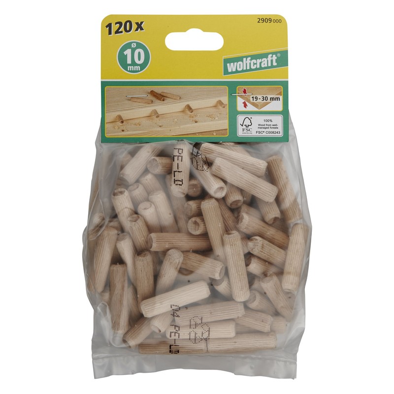 Fluted wooden dowels made from air dried beechwood.Size. 10 mm x 40 mm.Quantity. 120. Large Pack. 2909 Dowel Pins (pack of 120) 10 x 40mm
