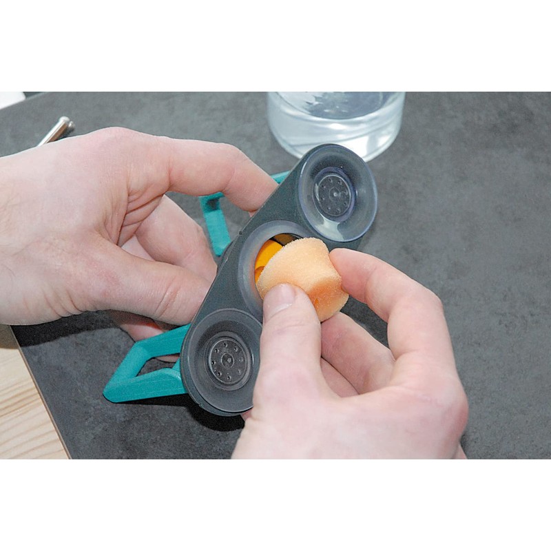 - 1 guide for diamond drills with sponge for water cooling; 2 suction cups ensure safe drilling