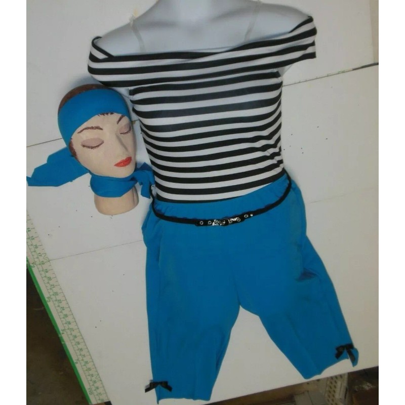 This LISTING is for an extra large adult of these cute 50's costume in turquoise blue, this is the only size I have in adult sizes. These retailed at $37 each and are perfect, made by Wolff Fording and will come in the original packaging. This outfit consists of a striped leotard (off the shoulder) and turquoise slit capri pants with bows. 1fndybrn59