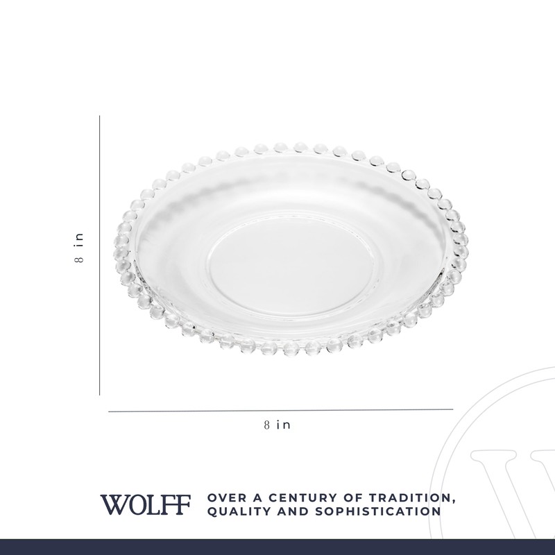 WOLFF - Set of 4 Pearl Beaded Crystal Dessert Plates - Salad, Appetizer or Starter Plate, Dinner Accessories, Decorative Dish, Crystal Kitchen Accessories - Luxury Glasswear - Clear 8"
