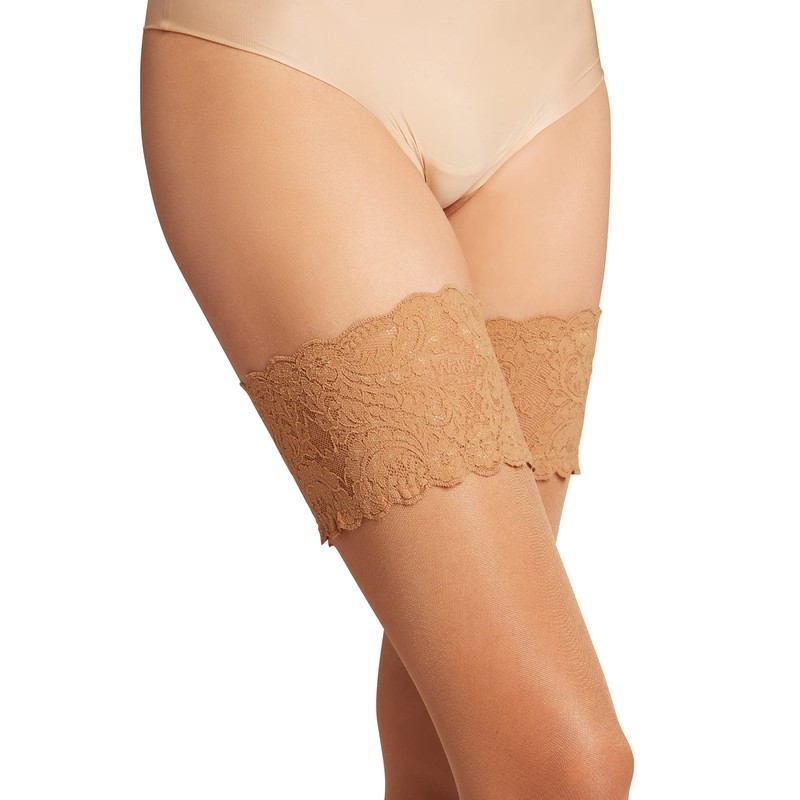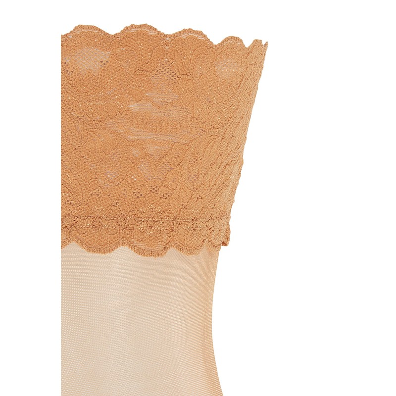 • Wide exclusive lace ribbon with floral pattern and Wolford logo.