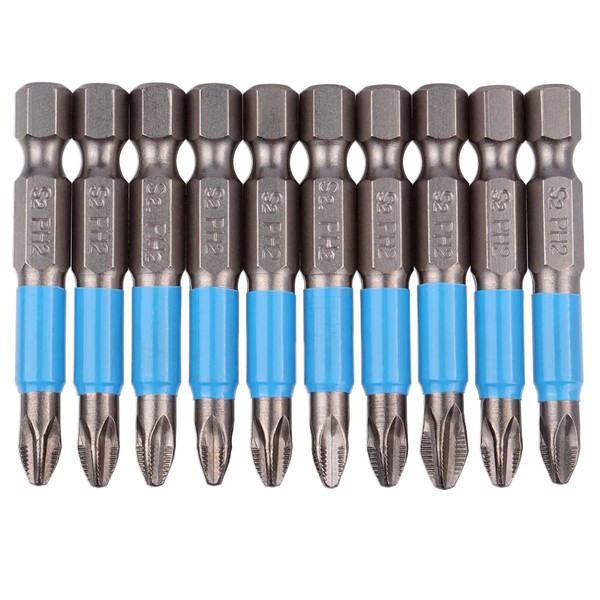 - 10pcs PH2 bits, Length: 50mm; Shank: 1/4 inch hex.