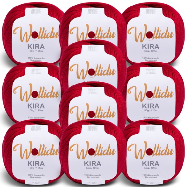 Wollidu Kira 100% Cotton for Knitting and Crocheting 10 x 50 g Set Crochet Yarn Knitting Yarn Dark Red
