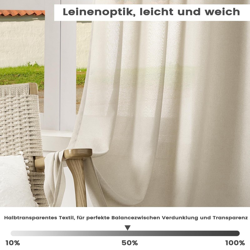 WOLTU Curtains with Eyelets, Linen Look, Semi-Transparent Voile Linen Curtain, Eyelet Curtain, Modern for Living Room, Bedroom, 135 x 175 cm, Sand (Pack of 1)