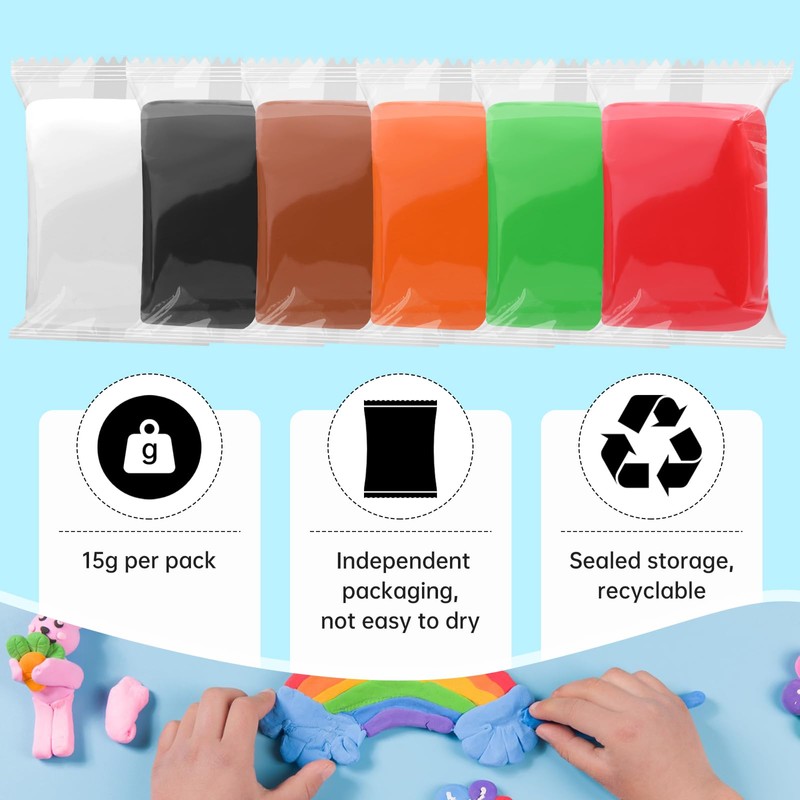 - Individually Packed:If you usually cannot use a whole piece of clay at the same time and dislike wasting artistic materials, you can try this. Our air dry modeling clay is packaged separately, which helps prevent it from drying out and is not affected by air or environment.