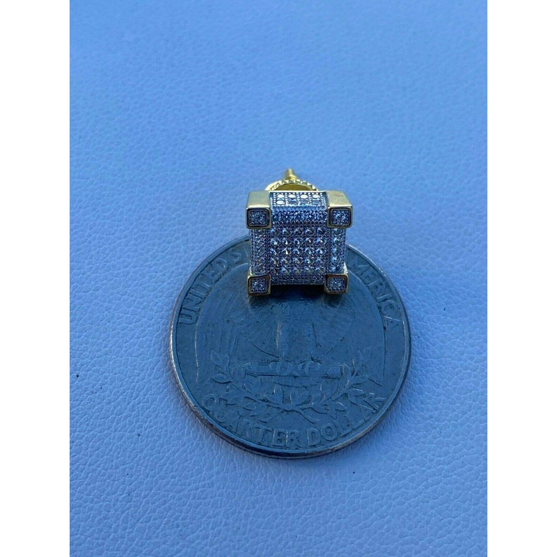 Woman's & Men's Real Solid 925 Silver 14k Gold Iced CZ Cube Hip Hop Earrings Stud Aretes Hombre
