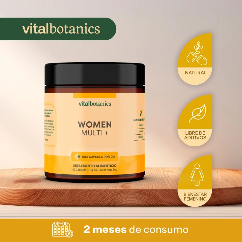 WOMEN MULTI Multivitamnico de 60 cpsulas 500mg con cido Flico, Biotina, Complejo B, Vitamina D, K, Calcio, Hierro, Magnesio, Zinc, Colgeno...