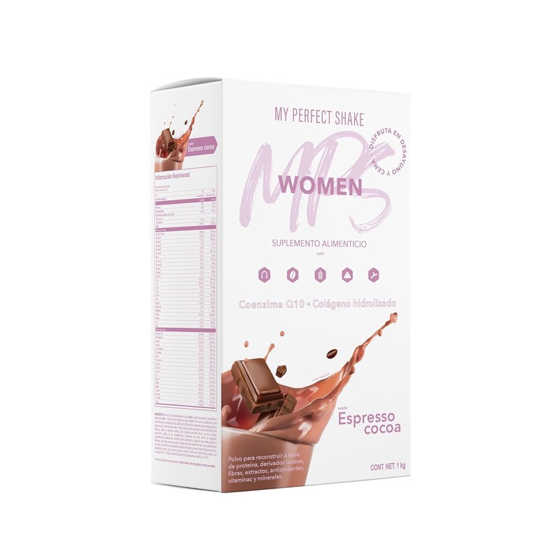 🌟 ⭐ WOMEN - MY PERFECT SHAKE® - Con 48 nutrientes + Colágeno hidrolizado, café verde, coenzima Q10, probióticos, omega 3, fibra, proteína y mucho más - Sabor Espresso Cocoa - 1 Kg ⭐ 🌟
