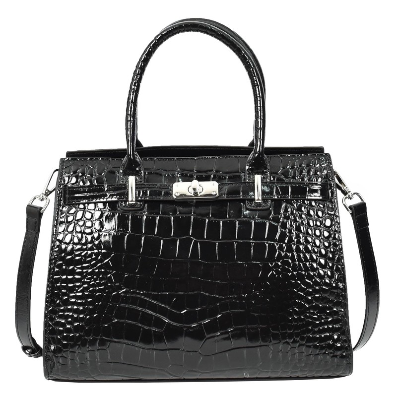 Women Real Leather Handbag Mid Size Organiser Top-Handle Style Handbag Noelle (Black)