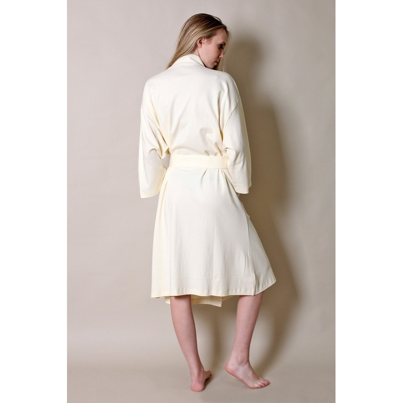 Women’s 100% Organic Cotton Spa Bath Robe Kimono, Super Soft Lightweight Non-Toxic Eco-Friendly (L/XL, Ivory)