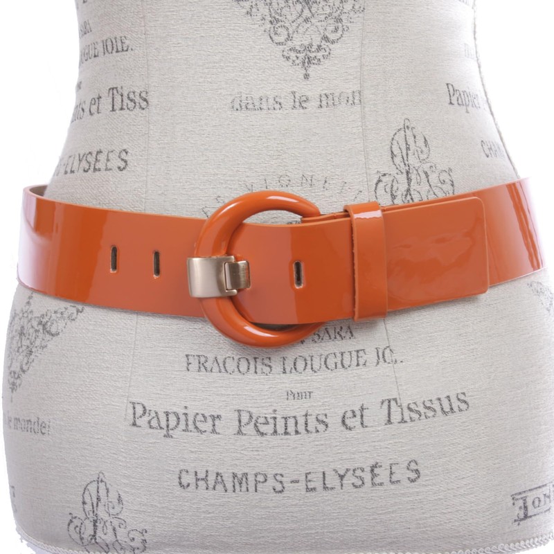 Women's 2" Wide High Waist Patent Leather Fashion Round Belt, Orange | L - 38"