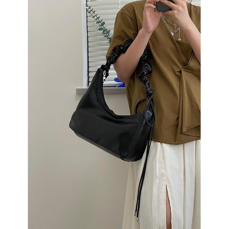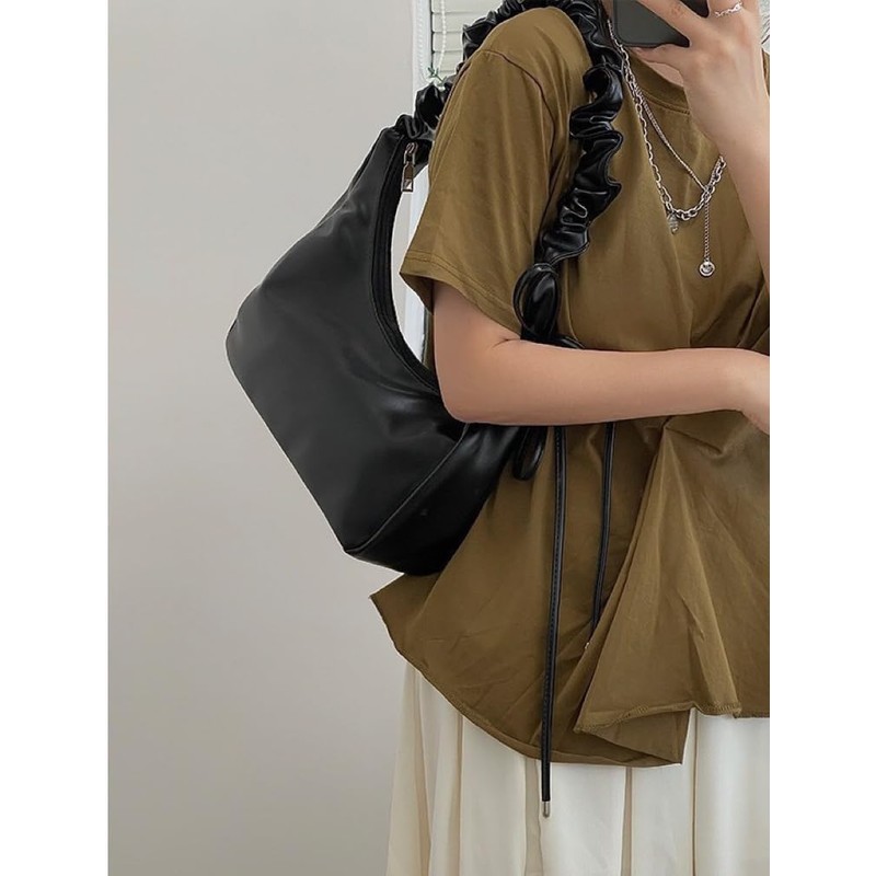 - This sophisticated gather shoulder bag features a classy atmosphere. With a simple design, the removable chain shoulder and gather detail are accents. This product is made of fine synthetic leather such as leather and features a gentle and smooth touch. You can carry it compact when folded. It is an item that works in a wide scene from casual to formal. The size is about 31 cm x 10 cm x 16 cm.