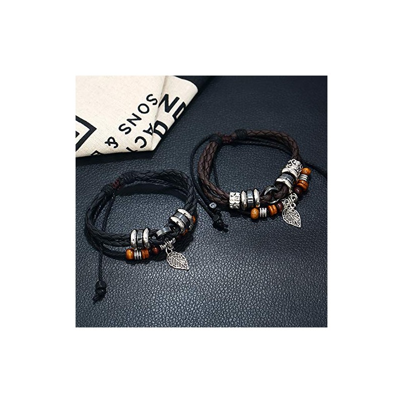- Bracelet for women ,Leather Multi-layered Braided Leaves Men Bracelet Retro Street Jewelry Women Trendy Jewelry for Birthday Gift