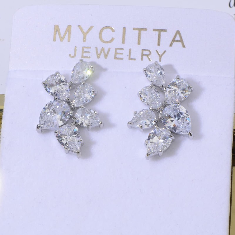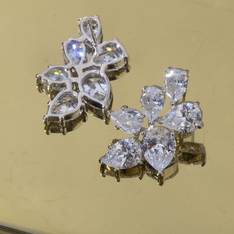 - UNIQUE DESIGN - Sparkly pear-shaped cubic zirconia cz crystal stones, 14k white gold plated, these elegant teardrop cz cluster earrings are sure to catch everyone's eyes.
