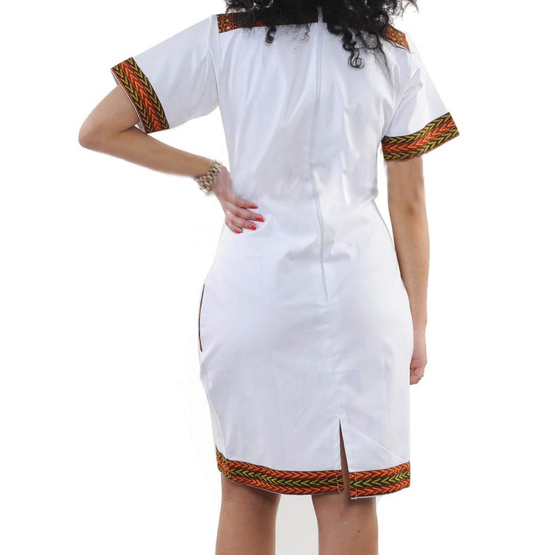 Women's Dashiki African Tribal Bohemian Dresses Short Sleeve Knee Length Skirt with Pockets White/Red