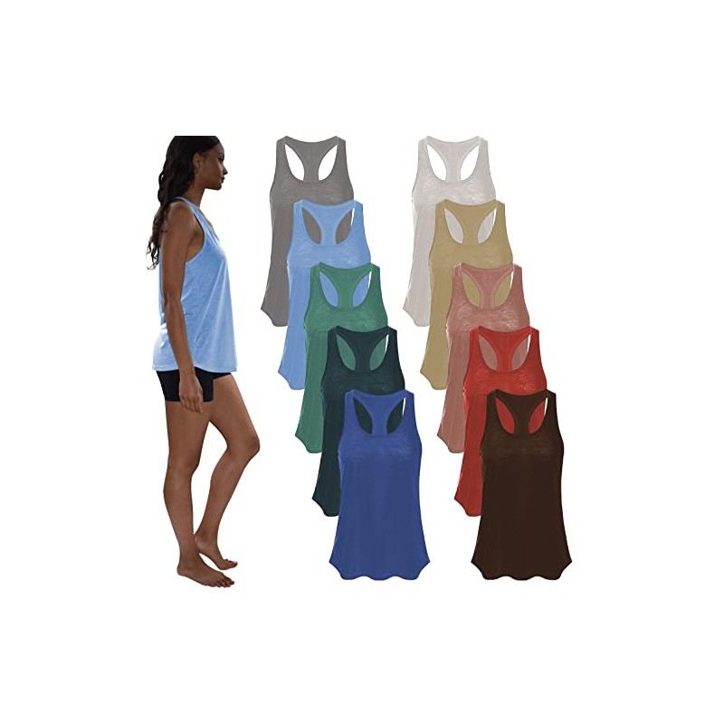Women's Everyday Flowy Burnout Slub Racer Back Active Workout Tank Tops- 10 Pack (10 Pack - Solid Color Blast, Small)