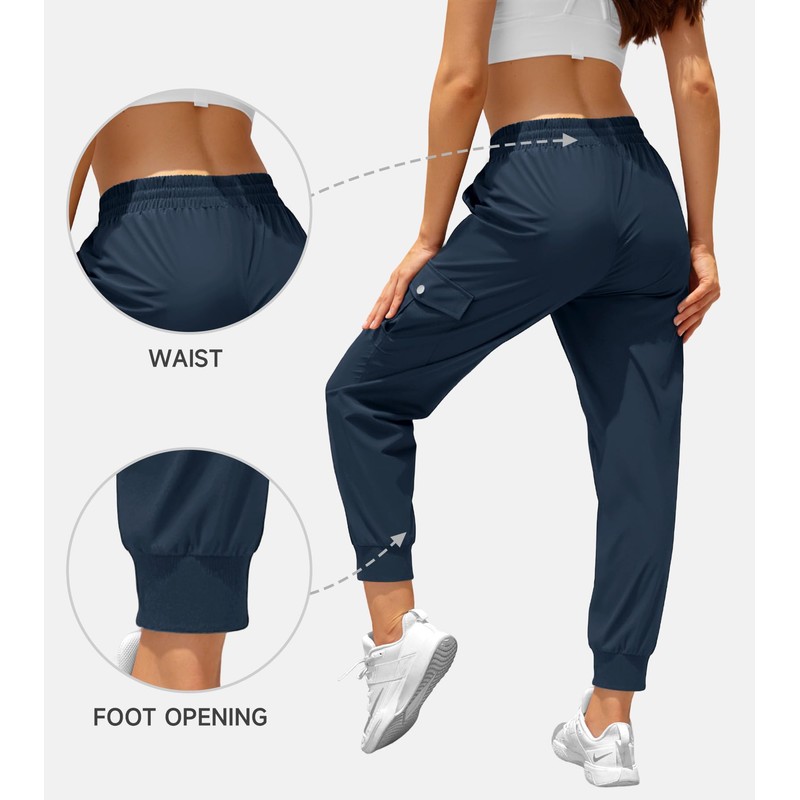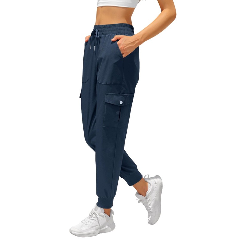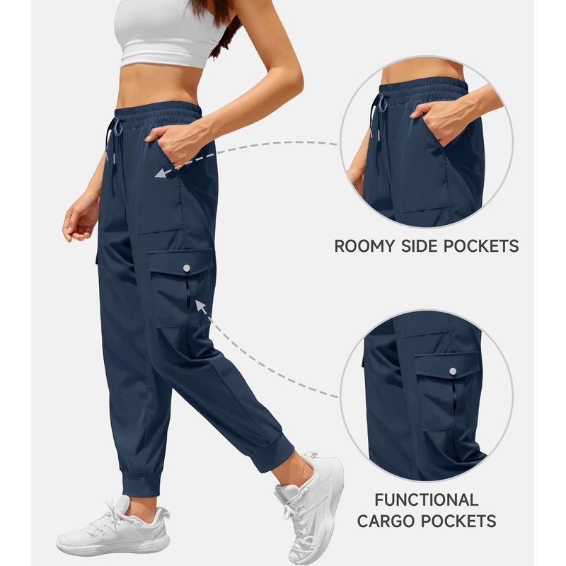 Women's Joggers with Pockets Drawstring, Lightweight Quick Dry Cargo Athletic Pants for Hiking Jogging Navy