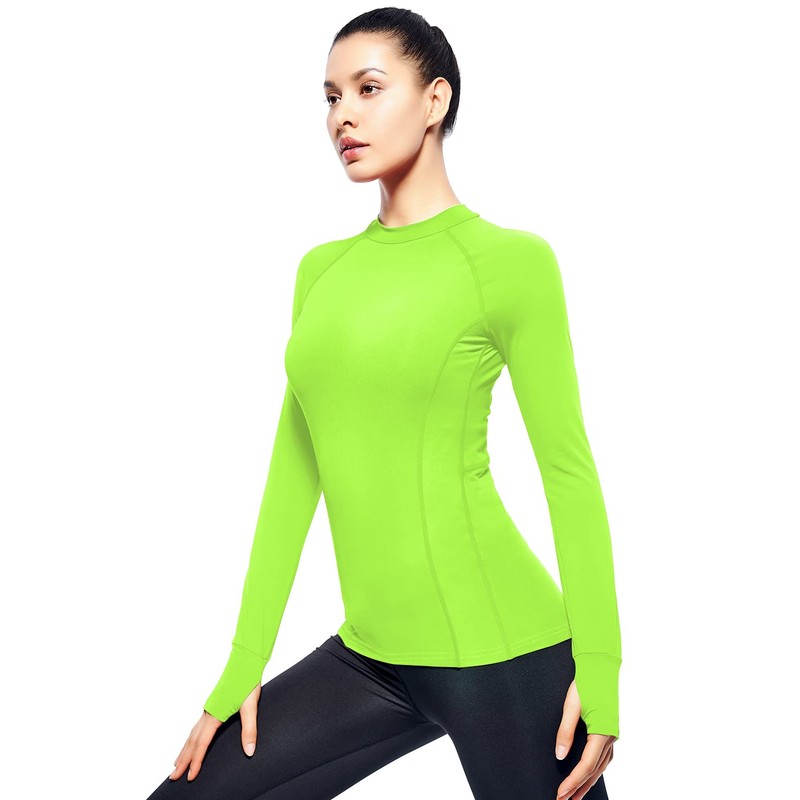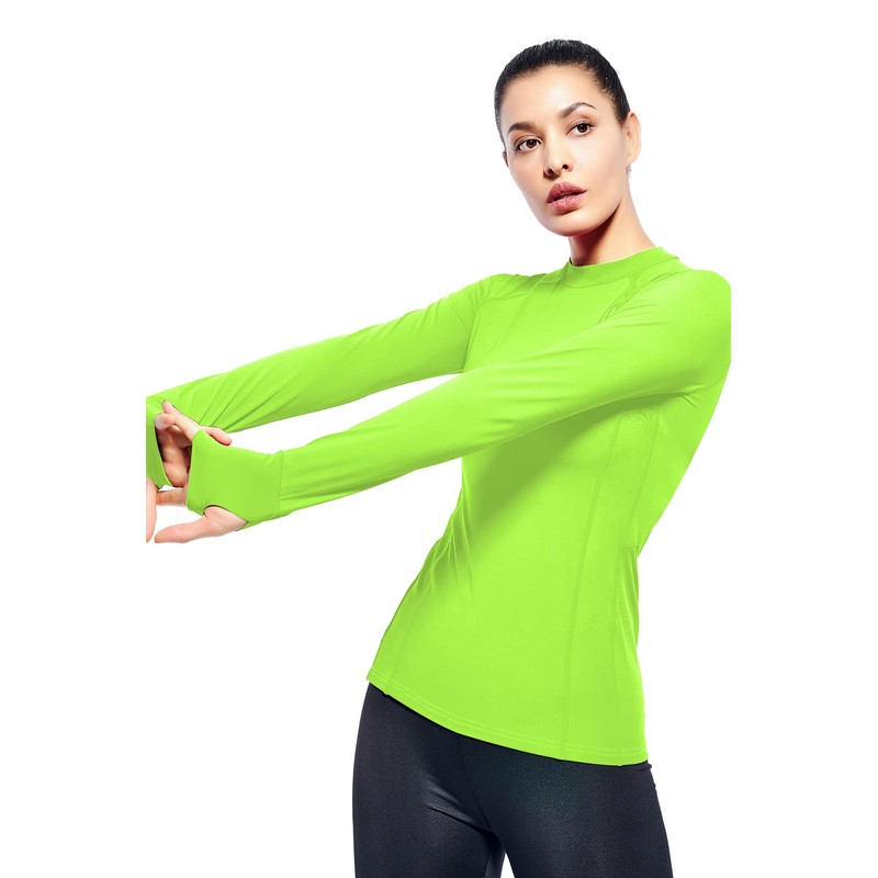 Women's Long Sleeve Running Shirts with Thumb Hole Mock Neck Athletic Tops(Neon Green,S)