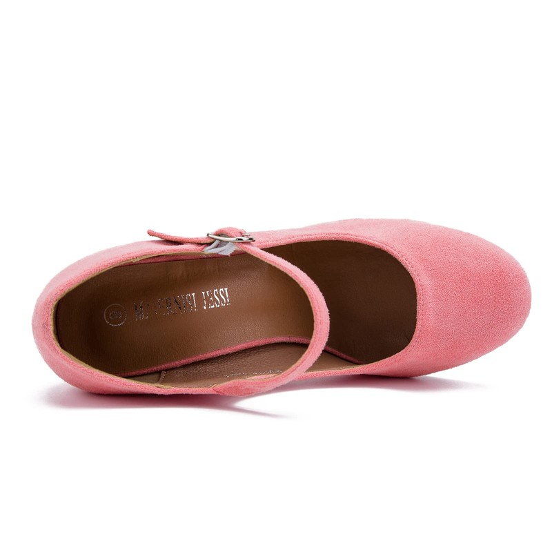 Women's Mary Jane Heels Closed Toe Chunky Heel Round Toe Block High Heel Pumps Suede Pink US 9.5