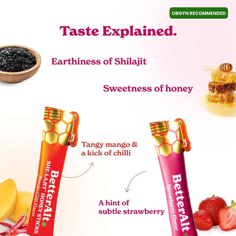 Women’s Multi-Mineral Honey Sticks – BetterAlt SHE-Lajit Strawberry Flavor with Shilajit, Shatavari & Saffron for Hormonal Balance & Energy, 30 Packs