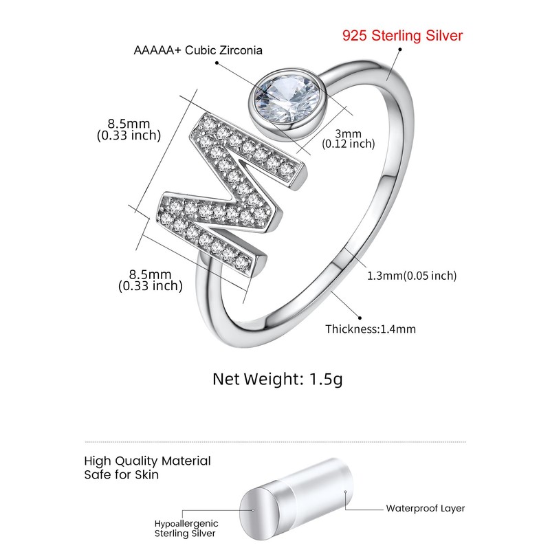 - Dainty M Initial Ring: Each letter ring was paved with round brilliant cut Infinite Elements Cubic Zirconia, which is not easy to fall off, shinning and sparkling, make you more eye catching in the crowd.