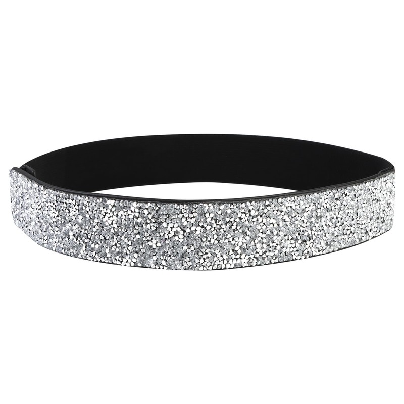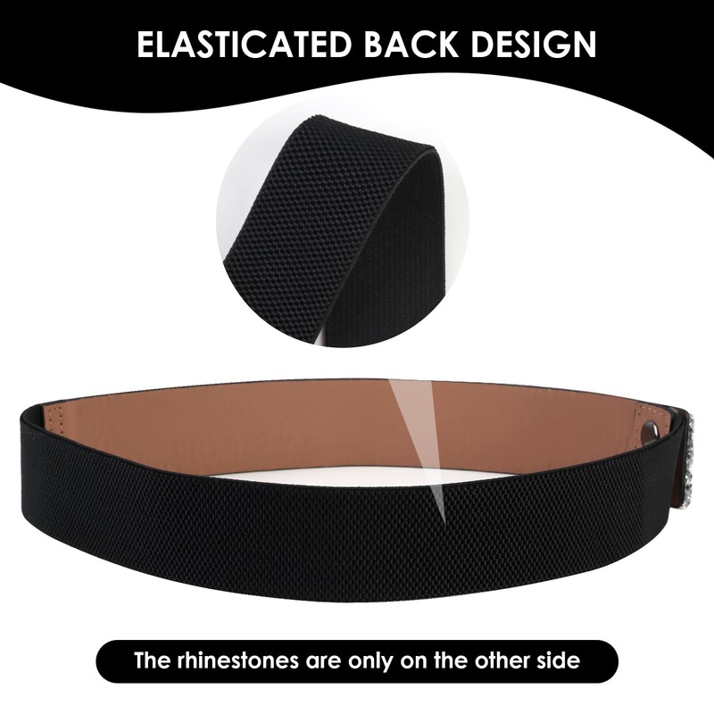 - STYLISH RHINESTONE DESIGN: Glitter rhinestones elegantly cover half of this women’s wide elastic belt, creating a dazzling front accent perfect for adding sparkle to party dresses, jumpsuits, and formal attire.